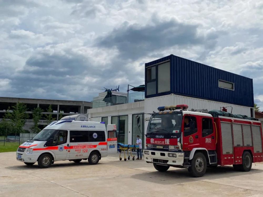 五分鐘后救護(hù)車和消防車到達(dá)現(xiàn)場,等待救援